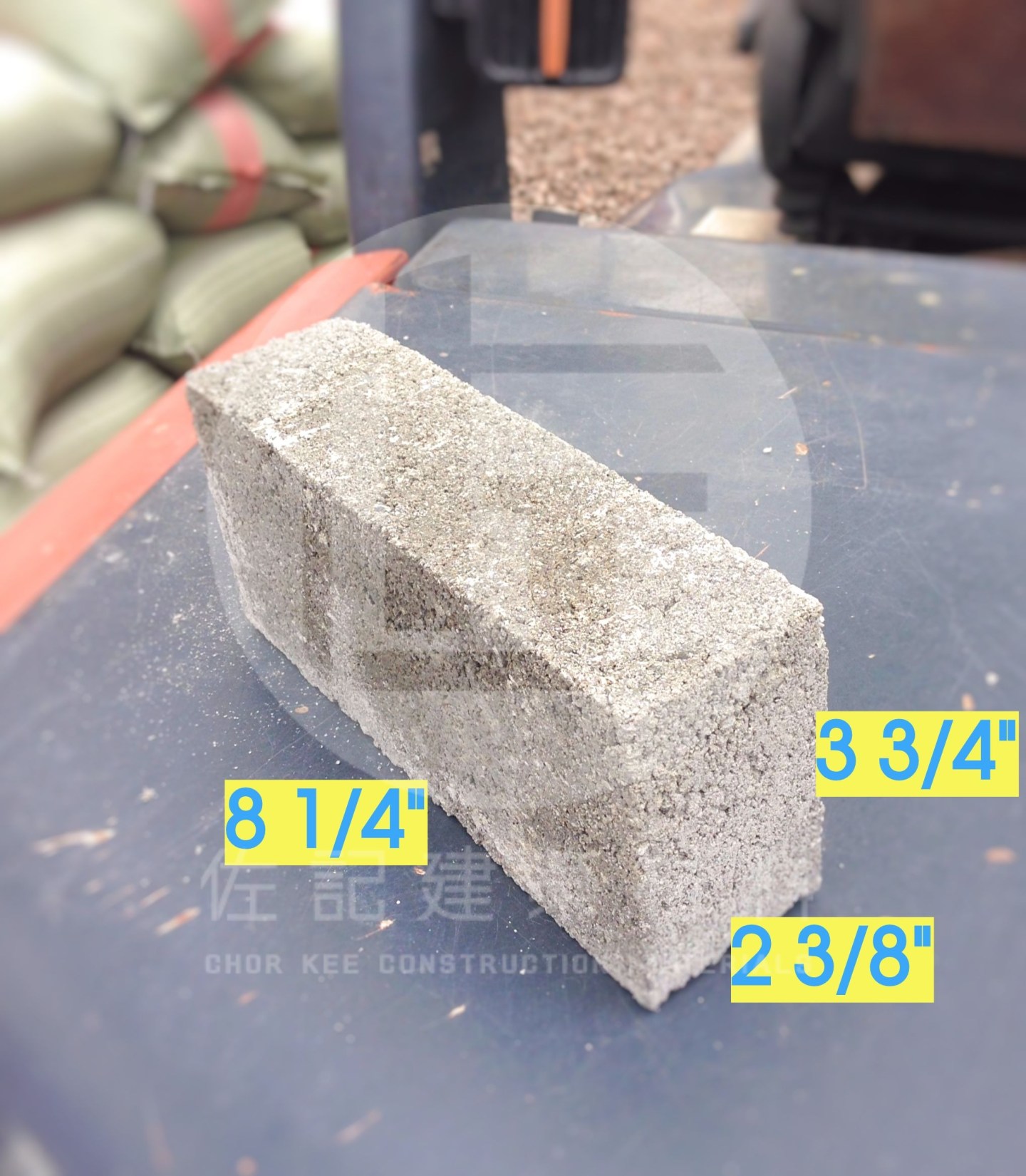 細沙磚的真實尺寸是 2 3/8″ x 3 3/4″ x 8 1/4″,尺寸看來複雜難記,但砌磚師傳在預算沙磚用量時,可以參考文章最底的圖片!