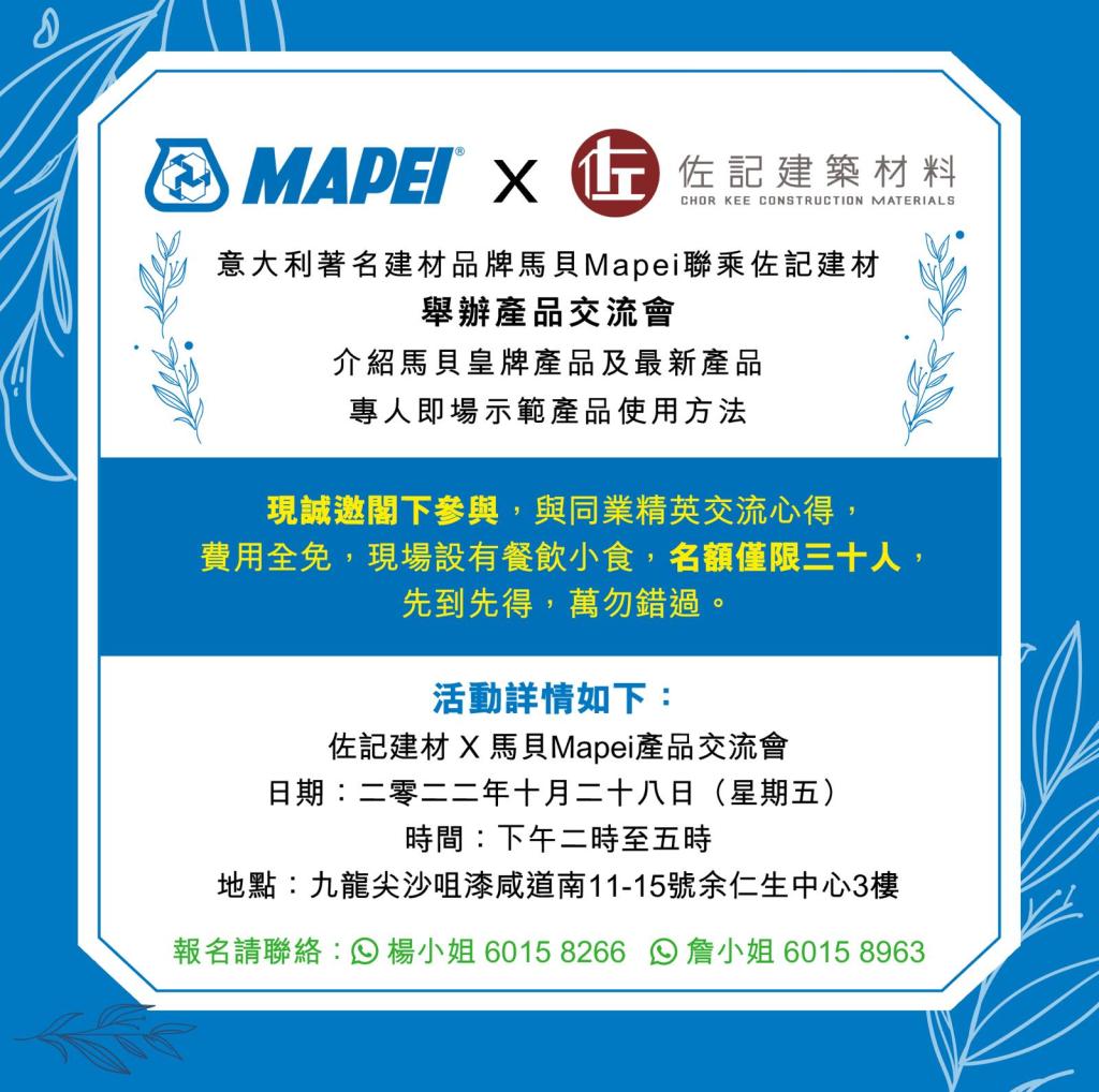 馬貝Mapei 🛠 佐記建築材料 👑馬貝皇牌產品👑 分享此文: 按一下即可分享至 X(在新視窗中開啟) X 按一下以分享至 Facebook(在新視窗中開啟) Facebook 喜歡 正在載入... 相關
